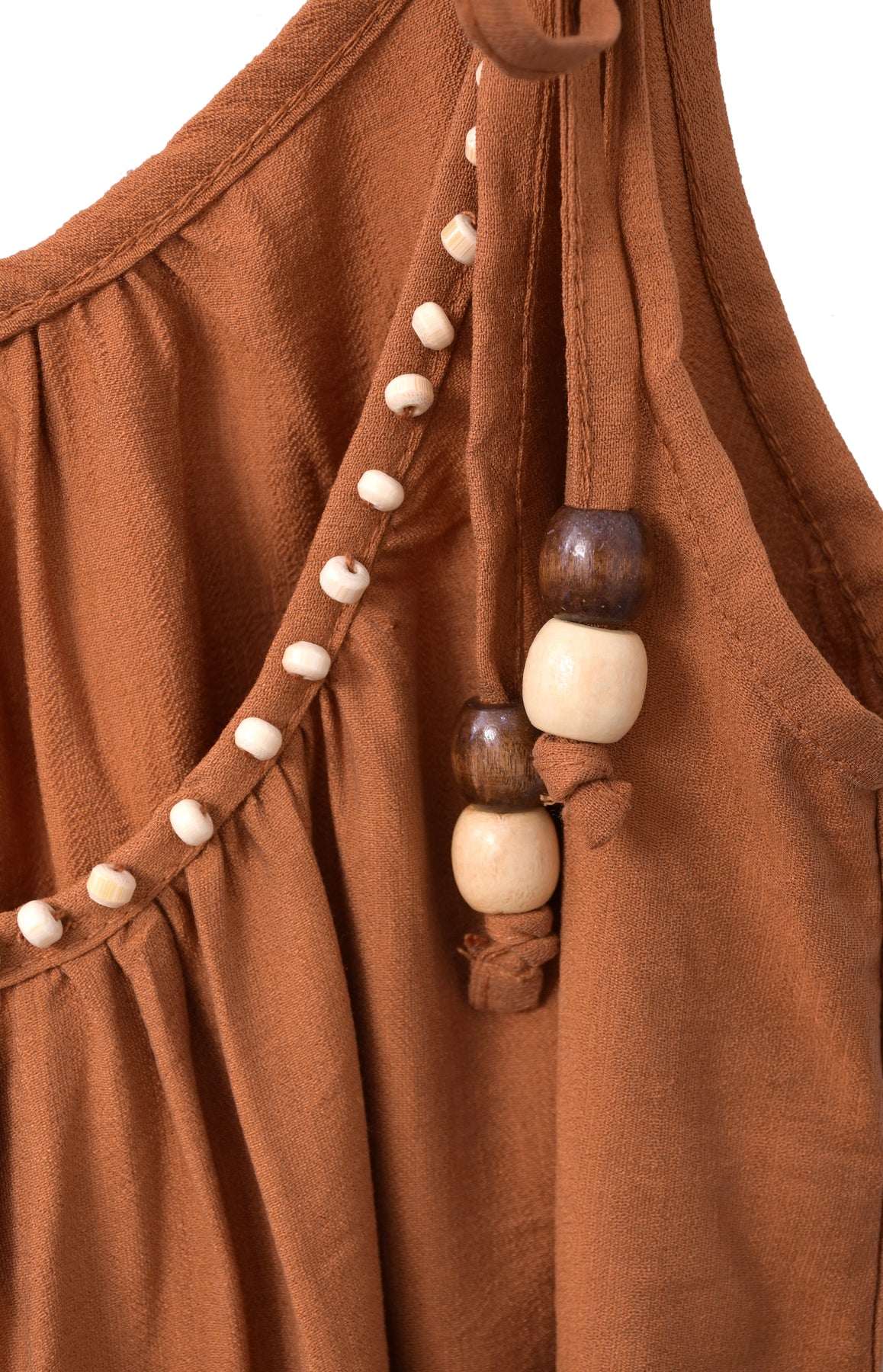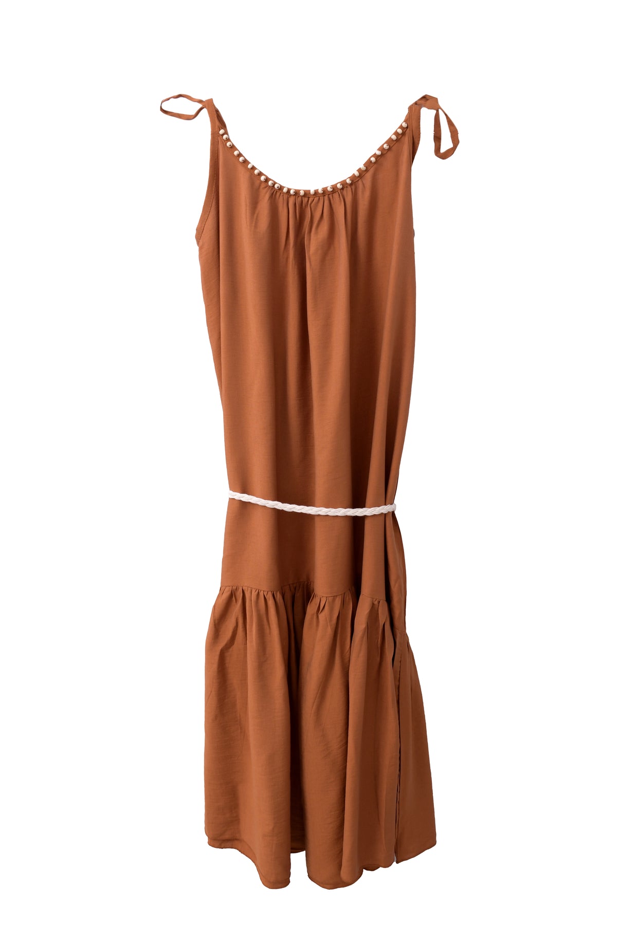 The Strappy Dress in Havan is your warm weather go-to: relaxed, effortless, and quietly stunning. In a rich earthy havan, made from our breathable viscose blend, it’s as light as a breeze on bare skin. With delicate adjustable straps and hand-sewn wooden beads lining the neckline, it brings a touch of craft to every sun-drenched moment.