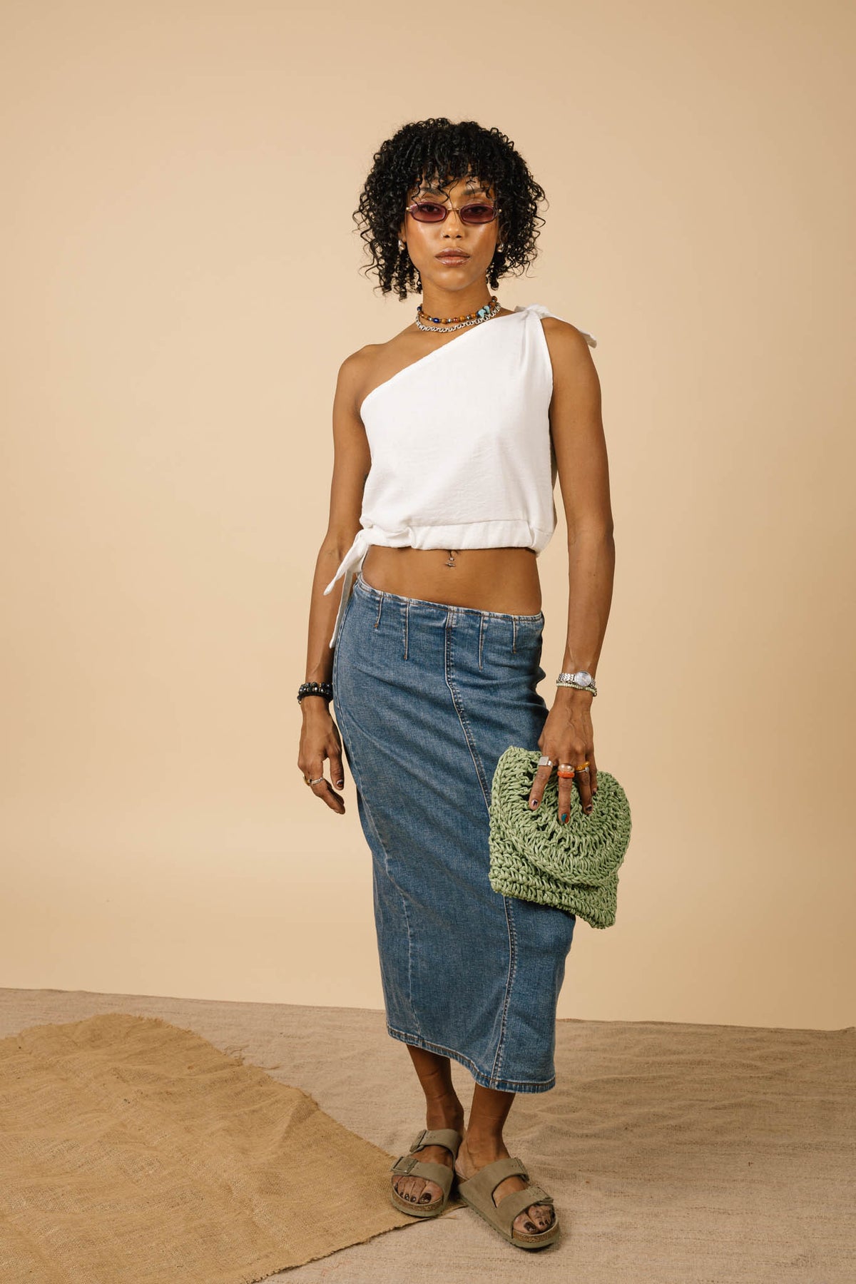 Introducing the Isla Top in an elegant, simple white color—a timeless one-shoulder linen top perfect for summer occasions. Its clean, crisp white color exudes elegance and versatility, making it a wardrobe essential for any seaside evenings. This top drapes gracefully with its asymmetrical neckline and lightweight linen fabric, offering a breezy and comfortable fit. Whether paired with beach shorts or a flowing skirt, its simplicity enhances your natural beauty and complements any beachside setting.